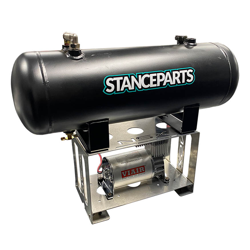 These are high quality laser cut & formed aluminum which are lighter than steel. SCW designed this product to allow easier mounting of the air tank (2 gallon) and air compressor to the factory battery tray. This product fastens to the factory (4) 6mm studs from the tire carrier (1991-95~). SCW also supplies the fasteners required for installation, as well as a special fitting to re-route the air supply line to the compressor. Fully detailed instructions are included!